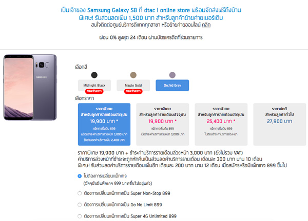 โปรโมชั่น Samsung Galaxy S8 จาก dtac