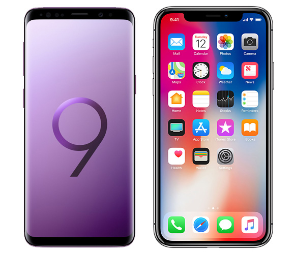 ถ้าหากมองในเรื่องดีไซน์แบบภาพรวมระหว่าง Samsung Galaxy S9 l S9+ และ iPhone X เรียกได้ว่า ทั้ง 3 รุ่นมีดีไซน์ที่ค่อนข้างใกล้เคียงกัน นั่นก็คือ จอไร้ขอบ ไร้ปุ่ม Home แต่ Samsung Galaxy S9 l S9+ จะมีการเหลือขอบด้านบนกับด้านล่างเล็กน้อย ในขณะที่ iPhone X เหลือขอบด้านบนที่มีลักษณะเป็นรอยบากสำหรับกล้องด้านหน้าและเซ็นเซอร์ต่าง ๆ ซึ่งทั้ง Samsung Galaxy S9 กับ iPhone X มีขนาดหน้าจอเท่ากันที่ 5.8 นิ้ว แต่ iPhone X น้ำหนักมากกว่า Samsung Galaxy S9