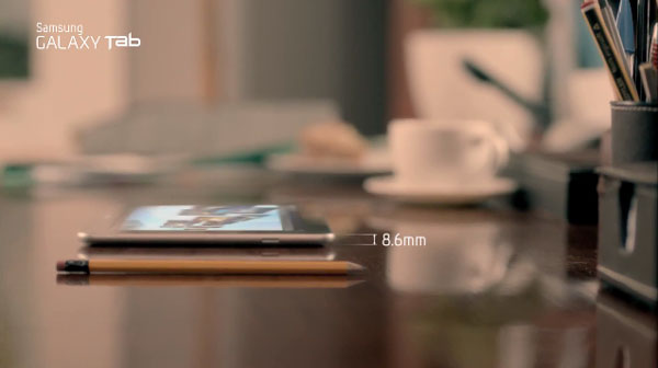 Samsung Galaxy Tab 10.1 นั้น ถือว่าเป็น แท็บเล็ต (Tablet) ที่บางที่สุดในขณะนี้ ซึ่งจุดเด่นในส่วนนี้ ทำให้ ซัมซุง (Samsung) หยิบยกเอาความบาง (มาก) มาสร้างเป็นภาพยนตร์โฆษณาของ