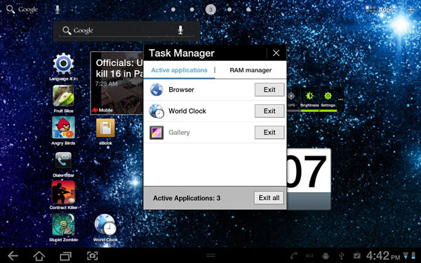 Samsung Galaxy Tab 8.9 ชื่อว่า TouchWiz UI ครับ ซึ่งเราสามารถสร้าง Shortcut App ที่เราต้องใช้บ่อยๆ ไว้ที่หน้า Homescreen ได้ และก็ยังมี Shortcut ในส่วนของ Taskbar-docked ที่จะประกอบไปด้วย App สำคัญๆ เช่น Task Manager, Calendar, World Clock ซึ่งสามารถปรับเปลี่ยนได้ตามใจชอบครับ
