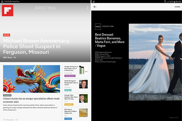 การปัดหน้าจอจากขวาไปซ้าย จะเป็นการเข้าสู่แอปพลิเคชัน Flipboard สำหรับอ่านข่าวอัปเดต หรือคอนเทนต์ต่างๆ ที่น่าสนใจ