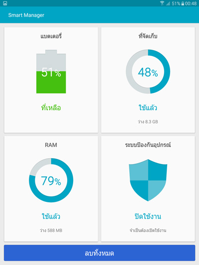 Smart Manager แอปพลิเคชันสำหรับจัดการระบบต่างๆ ในตัวเครื่อง ไม่ว่าจะเป็น แบตเตอรี่, พื้นที่จัดเก็บข้อมูล, RAM และระบบป้องกันอุปกรณ์