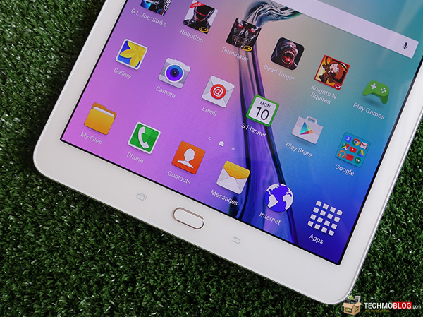 Samsung Galaxy Tab S2 9.7 รองรับการสแกนลายนิ้วมือที่ปุ่ม Home โดยผู้ใช้จำเป็นต้องตั้งค่าลายนิ้วมือเสียก่อน