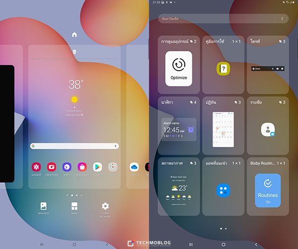 สามารถเลือกเปลี่ยนวอลเปเปอร์, Widget และตั้งค่าการใช้งานในหน้าหลัก เช่น รูปแบบหน้าจอหลัก, ตารางหน้าจอหลัก, ปุ่มแอปฯ และอื่น ๆ ได้ตามสไตล์การใช้งาน