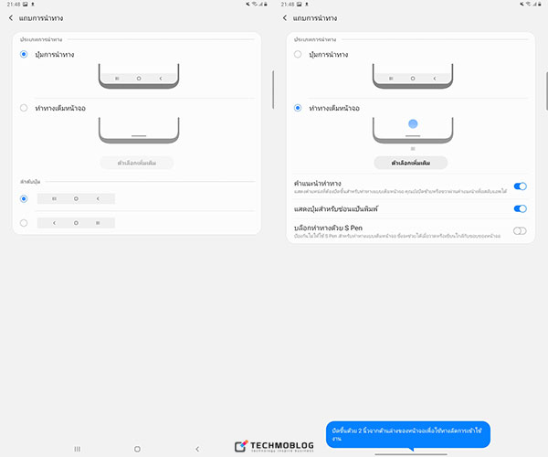 ด้านปุ่มควบคุมการทำงานแบบสัมผัส สามารถเลือกสลับตำแหน่งของปุ่ม Recent Apps กับปุ่ม Back ได้ หรือจะเปลี่ยนเป็นการควบคุมการทำงานแบบใช้ท่าทางก็ได้เช่นกัน