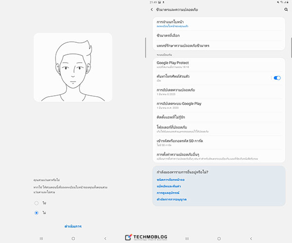 ในด้านความปลอดภัยและการปลดล็อกตัวเครื่องนั้น รุ่นนี้รองรับเฉพาะการสแกนใบหน้า (Face Recognition) เพียงอย่างเดียว ไม่รองรับการสแกนลายนิ้วมือ