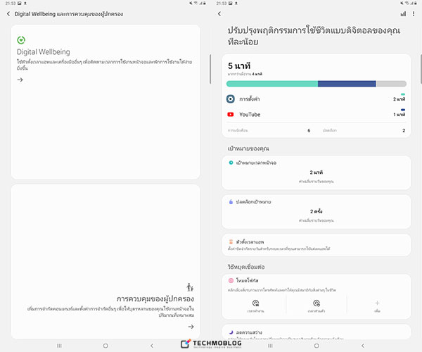 Digital Wellbeing เป็นโหมดสำหรับติดตามเวลาในการใช้งานแต่ละแอปพลิเคชัน ที่ผู้ใช้สามารถตั้งค่าขีดจำกัดรายวันในการใช้งานแอปฯ แต่ละแอปฯ ได้ นอกจากนี้ ผู้ปกครองยังสามารถเพิ่มการจำกัดคอนเทนต์และตั้งค่าการจำกัดการใช้งานของบุตรหลานให้ใช้งานในแต่ละวันได้ด้วยเช่นกัน