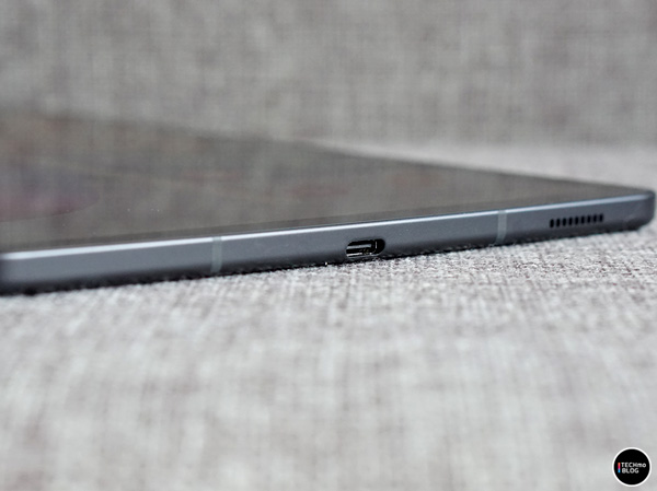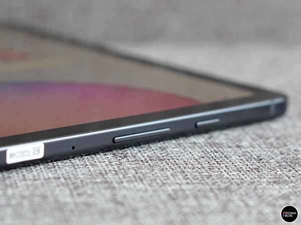 ส่วนด้านซ้ายของตัวเครื่อง ไม่มีปุ่มหรือพอร์ตใด ๆ เนื่องจาก Samsung Galaxy Tab S6 Lite รุ่นนี้ ไม่มีอุปกรณ์เสริมที่เป็นเคสคีย์บอร์ดนั่นเอง แต่สำหรับใครที่มีคีย์บอร์ดแบบ Bluetooth ก็สามารถนำมาเชื่อมต่อกับ Samsung Galaxy Tab S6 Lite และใช้พิมพ์งานได้เช่นกัน