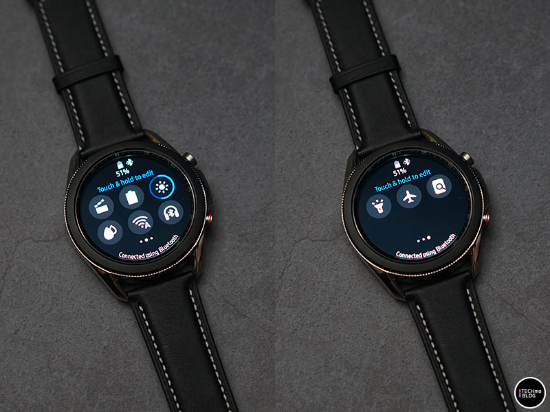 มาดูอินเทอร์เฟสการใช้งานบน Samsung Galaxy Watch3 LTE กันบ้าง โดยการปัดลงจากด้านบน จะเป็นเมนูลัดต่าง ๆ ไม่ว่าจะเป็น โหมด Goodnight, ปรับความสว่างของหน้าจอ, โหมดห้ามรบกวน, ไฟฉาย และอื่น ๆ ซึ่งในส่วนนี้จะบอกปริมาณแบตเตอรี่ที่เหลืออยู่ด้วยเช่นกัน