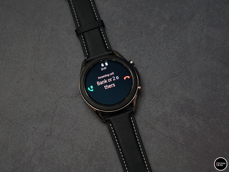ในกรณีที่มีสายเรียกเข้า ก็จะมีการแจ้งเตือนบน Samsung Galaxy Watch3 ด้วยเช่นกัน ซึ่งความพิเศษของรุ่น LTE ที่รองรับ eSIM ในตัว ก็คือ สามารถกดโทรออกจากนาฬิกาได้เลยโดยไม่ต้องผ่านสมาร์ทโฟน