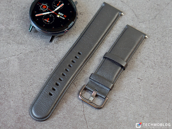 สำหรับ Samsung Galaxy Watch Active 2 รุ่นที่นำมารีวิวนี้ มาพร้อมกับสายหนัง สามารถถอดเปลี่ยนได้ ส่วนใครที่ไม่ชอบสายนาฬิกาแบบสายหนัง ก็จะมีสายสปอร์ตแบนด์ให้เลือกเช่นกัน และมีให้เลือกหลายสีอีกด้วย