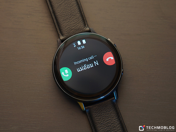 ในกรณีที่มีสายเรียกเข้า ก็จะมีการแจ้งเตือนบน Samsung Galaxy Watch Active 2 ด้วยเช่นกัน ซึ่งความพิเศษของ Samsung Galaxy Watch Active 2 รุ่น LTE ที่รองรับ eSIM ในตัว ก็คือ สามารถกดโทรออกจากนาฬิกาได้เลยโดยไม่ต้องผ่านสมาร์ทโฟน