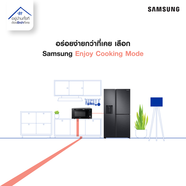 Enjoy Cooking Mode - อร่อยง่ายกว่าที่เคย ด้วยตู้เย็นซัมซุงเทคโนโลยี SpaceMaxTM เพิ่มพื้นที่แช่กว้างขวางพร้อมสไตล์ภายนอกที่สวยงาม เก็บอาหารได้มากถึง 617 ลิตร[1] สามารถสลับโหมดแช่เย็น 4 แบบเพื่อรักษาความสดอาหารทุกชนิดอย่างยาวนานและประหยัดพลังงานเพิ่มขึ้น 50% หรือสำหรับคนที่อยู่คนเดียวไม่ต้องเก็บเยอะแต่ต้องเก็บนาน อาจหันมาใช้ตู้เย็น 2 ประตู ด้วยนวัตกรรม Twin Cooling PlusTM และเตาอบไมโครเวฟสุดเจ๋ง (Convection) ที่ทำอาหารแบบง่ายหรือแอดวานซ์ทั้ง อบ อุ่น ย่าง ทอด ได้เครื่องเดียวหรือไมโครเวฟสำหรับอุ่นและนึ่งที่มีพื้นผิวเซรามิกด้านในเตา ง่ายต่อการทำความสะอาดทนรอยขีดข่วน และต้านแบคทีเรียได้ถึง 99.9% ให้อาหารของคุณดีต่อสุขภาพทุกเมนู