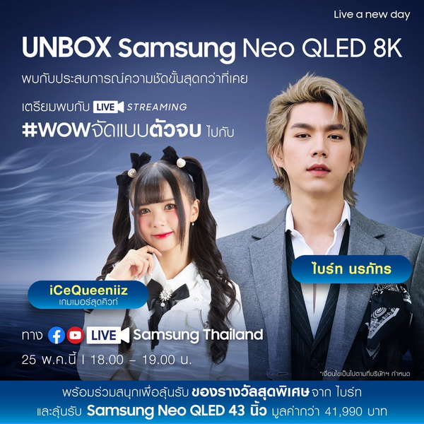 กรุงเทพฯ, 22 พฤษภาคม 2566 – ซัมซุง ตอกย้ำความเป็นผู้นำแบรนด์ยอดขายทีวีอันดับหนึ่งทั่วโลก 17 ปี จัด Live Streaming เปิดตัว Neo QLED 8K TV 2023 – #WOWจัดแบบตัวจบ อย่างเป็นทางการในประเทศไทย มอบประสบการณ์ความชัดขั้นสุดกว่าที่เคยกับสุดยอดนวัตกรรมทีวีพรีเมียมแห่งปี 2023 นำทีมโดยผู้บริหารซัมซุง เจนนิเฟอร์ ซอง ประธานบริษัทและสุวิณ โกษีอำนวย หัวหน้ากลุ่มธุรกิจเครื่องใช้ไฟฟ้าและผู้อำนวยการธุรกิจภาพและเสียง ร่วมนำเสนอทีวีพรีเมียมมาตรฐานใหม่ที่เป็นมากกว่าทีวี เพื่อประสบการณ์การรับชมที่ชัดขั้นสุดทั้งภาพและเสียง มาพร้อมเทคโนโลยีอัจฉริยะที่จะทำหน้าที่เป็นผู้ช่วยประจำบ้าน ในแบบ WOWกว่าที่เคย อีกทั้งยังขนเซเลบริตี้และกูรูมากมายมาร่วมไลฟ์ในครั้งนี้ อาทิ ไบร์ท-นรภัทร วิไลพันธุ์, พีเค-ปิยะวัฒน์ เข็มเพชร, อู๋- อติชาญ เชิงชวโน หรือ อู๋ Spin 9 และ ไอซ์-บุษกร สุวรรณนิล หรือ iCeQueeniiz เกมเมอร์สุดคิวท์