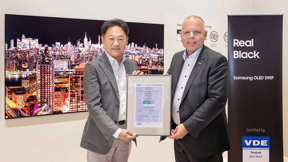 คุณอันสการ์ ฮินซ์ Chairman and CEO of VDE กล่าวว่า “การรับรอง ‘Real Black’ ของ VDE เป็นการรับรองที่มอบให้เฉพาะจอแสดงผลที่สามารถผ่านการทดสอบที่เข้มงวดตามมาตรฐานของ VDE เท่านั้น ซึ่งจอ OLED ของซัมซุง มีความโดดเด่นด้วยความสามารถในการรักษาความดำที่ลึกและให้สีแม่นยำได้อย่างสม่ำเสมอในทุกสภาพแสง ตั้งแต่ห้องโฮมเธียเตอร์ไปจนถึงห้องนั่งเล่นที่สว่างจ้า ความสำเร็จนี้สะท้อนถึงทั้งความเป็นเลิศทางเทคโนโลยีและความมุ่งมั่นในการส่งมอบคุณภาพภาพที่ดีที่สุดในทุกสภาวะการใช้งานจริง”