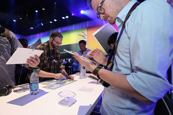 นิวยอร์ก, สหรัฐฯ – 12 มิถุนายน 2557 – ซัมซุงนำเสนอแท็บเล็ตระดับพรีเมียมรุ่นแรก “ซัมซุง กาแลคซี่ แท็บ เอส (Samsung Galaxy Tab S)” 2 ขนาดหน้าจอ คือ 10.5 นิ้ว และ 8.4 นิ้ว โดดเด่นด้วยหน้าจอ Super AMOLED ที่ล้ำหน้าที่สุด พร้อมดีไซน์มีสไตล์ บางและเบาที่สุด ง่ายต่อการใช้งาน ผสานคอนเทนต์พิเศษระดับพรีเมี่ยมเพื่อประสบการณ์ความบันเทิงที่เหนือระดับ รวมทั้งฟีเจอร์โดดเด่นมากมายเพื่อการใช้งานที่สมบูรณ์แบบที่สุด