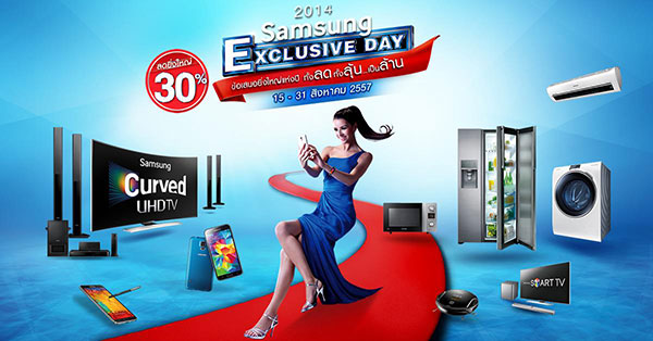 ซัมซุง จัดงานมหกรรมลดราคาเครื่องใช้ไฟฟ้าครั้งยิ่งใหญ่แห่งปี กับ Samsung Exclusive Day 2014 ทั้งลด ทั้งลุ้น เป็นล้าน เพียงช้อป 1,000 บาทขึ้นไป ตั้งแต่วันนี้ - 31 สิงหาคมนี้ รายละเอียดเพิ่มเติม https://www.samsung.com/th/exclusiveday/