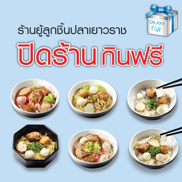 ซัมซุง ปิดร้านยู้ ลูกชิ้นปลาเยาวราช ชวนชาวซัมซุง กาแลคซี่ กินฟรี ณ ร้านยู้ลูกชิ้นปลาเยาวราช ในวันอังคารที่ 25 พฤศจิกายนนี้เพียงวันเดียวเท่านั้น สิทธิพิเศษนี้มอบให้เฉพาะผู้ใช้สมาร์ทโฟนซัมซุง กาแลคซี่ และ แอพพลิเคชัน กาแลคซี่ กิฟท์ เพียงแค่กดใช้สิทธิ์บนแอพพลิเคชัน ก็รับสิทธิ์กินฟรีได้เลย เมนูใดก็ได้ (ยกเว้นเมนูลวกจิ้มและเครื่องดื่ม) สิทธิ์ละ 2 ชาม เพียง 1,000 ท่านแรกเท่านั้น ผู้สนใจสามารถรอรับบัตรคิวตั้งแต่เวลา 10.00 น. เรื่อยไปจนกว่าจะครบสิทธิ์ตามกำหนด