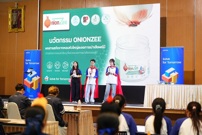ทีม Onion Power Rangers นำแนวคิดจากงานวิทยาศาสตร์ในห้องเรียนมาพัฒนาผลิตภัณฑ์ผงสารสกัด จากหอมหัวใหญ่ที่ช่วยชะลอการเน่าเสียของผลไม้ โดยนำใช้คุณสมบัติของสารสกัดจากหอมหัวใหญ่ ผ่านการทดลองและปรับสูตรให้เหมาะสำหรับเกษตรกรที่ต้องการลดความเสียหายทางผลผลิต และเพิ่มรายได้ รวมไปถึงผู้ค้าปลีกและผู้บริโภคระดับครัวเรือนที่ต้องการชะลอการเน่าเสียของผลไม้ และช่วยยืดอายุ การเก็บรักษาได้อย่างปลอดภัย สะดวก ใช้งานง่าย