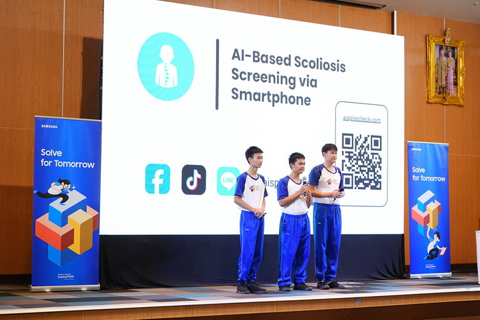 ทีม AI SpineCheck ใช้เทคโนโลยี AI วิเคราะห์ภาพถ่ายของแผ่นหลังเด็ก เพื่อตรวจหาความผิดปกติและประเมินระดับความเสี่ยงเบื้องต้น ลดภาระการตรวจในโรงเรียนขนาดใหญ่ และเพิ่มโอกาสให้เด็กได้รับการรักษาตั้งแต่ระยะเริ่มแรก