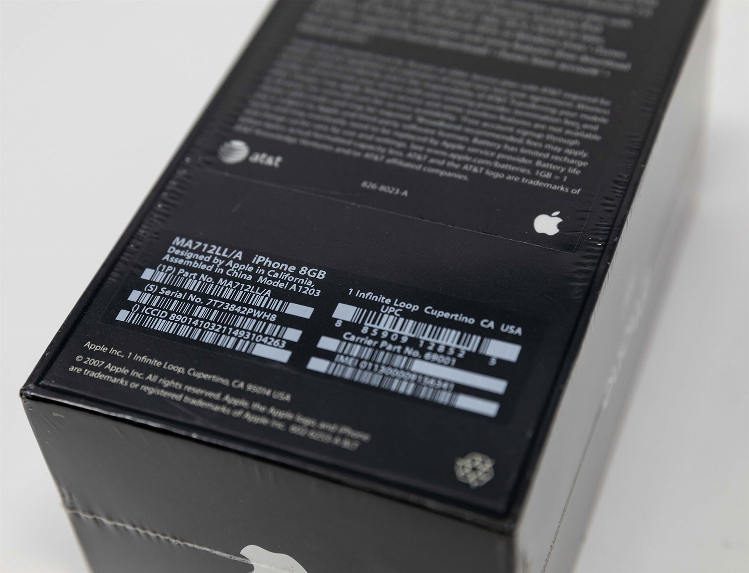 โดย iPhone รุ่นแรกที่ถูกนำมาประมูลในครั้งนี้ เป็นโมเดล A1203 มีขนาดความจุที่ 8GB อยู่ในกล่องที่ถูกซีลอย่างดีและไม่เคยถูกแกะหรือถูกใช้งานมาก่อน ทำให้มีสภาพที่สมบูรณ์มาก ซึ่ง iPhone รุ่นนี้ เปิดตัวที่ราคา $599 แต่สามารถถูกประมูลได้ในราคาที่สูงกว่าเดิมถึง 65 เท่า