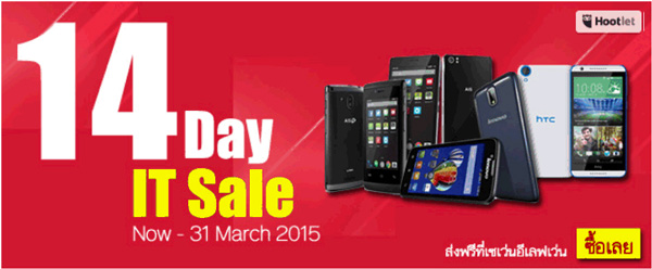 14 Days IT Sale โดย Shopat7.com พบกับโปรโมชั่นสินค้า IT ลดราคากระชากใจ มีทั้งสินค้าขายดี สินค้ากระแส จำนวนจำกัด หมุนเวียนเปลี่ยนกันไป หมดแล้วหมดเลย สนใจดูรายละเอียดได้ที่ https://www.shopat7.com/it-clearance-sale วันนี้ ถึง 31 มีนาคม 2558 นี้เท่านั้น