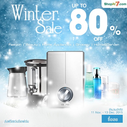 Shopat7.com จัดโปรฯสุดคุ้ม Winter Sale ต้อนรับเทศกาลของขวัญ กับสินค้ากว่า 500 รายการ ลดสูงถึง 80% เช่น Lotus Impression เซตผ้านวม 5 ฟุต และผ้าปูที่นอน 5 ชิ้น ราคาปกติ 5,998 บาท ลดเหลือเพียง 2,699 บาท เครื่องทำน้ำอุ่น Mazuma รุ่น Diamond ราคาปกติ 4,890 บาท ลดเหลือเพียง 3,790 บาท Clinique Moisture Surge Extended Thirst Relief 50ml. ราคาปกติ 1,900 บาท ลดเหลือเพียง 1,299 บาท และพบกับสินค้าราคาสุดพิเศษอีกมากมายได้แล้ววันนี้ ถึง 13 ธ.ค. 58