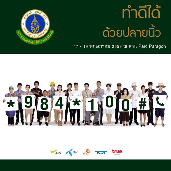 ศิริราชร่วม 5 เครือข่ายมือถือจัดทำโครงการ ทำดีได้ด้วยปลายนิ้ว เซตระบบ USSD *984*100# โทรออกครั้งละ 100 บาท ร่วมบริจาคสร้างอาคารนวมินทรบพิตร 84 พรรษา รพ.ศิริราช เปิดตัวอย่างเป็นทางการแล้วเมื่อวันที่ 17 พฤษภาคม ที่ผ่านมา