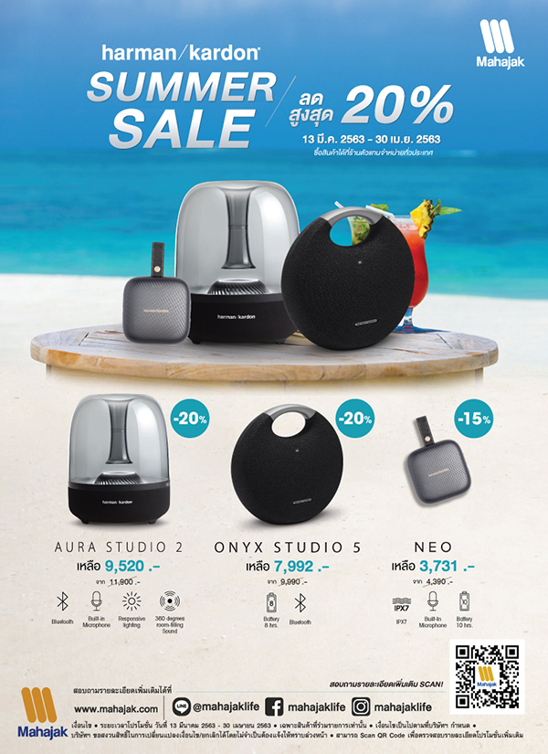 ขอต้อนรับเข้าสู่หน้าร้อนอย่างเป็นทางการกับ Harman Kardon Summer Sale ลดสูงสุด 20% โดยรายละเอียดสินค้าร่วมรายการมีดังต่อไปนี้