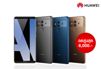 หัวเว่ยให้คุณเป็นเจ้าของ HUAWEI Mate 10 Pro สมาร์ทโฟนอัจฉริยะที่ประมวลผลด้วยเทคโนโลยี AI รุ่นแรกของโลกซึ่งมาพร้อมกล้องคู่เทคโนโลยีจาก Leica ในราคาพิเศษเพียง 21,990 บาท ตั้งแต่วันนี้ – 31 กรกฎาคม 2561 ณ หัวเว่ยแบรนด์ช้อป และร้านตัวแทนจำหน...