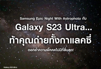 กรุงเทพฯ, ประเทศไทย 29 เมษายน 2566 – Samsung Galaxy S23 Ultra ท้าให้ทุกคนถ่ายลองถ่ายภาพทั้งกาแลคซี่ ตอกย้ำความพี๊คคคไม่มีที่สิ้นสุดกับฟีเจอร์ Expert RAW ที่จะช่วยให้การถ่ายภาพ Astrophotography ในยามค่ำคืนได้ง่ายดายใช้อุปกร...