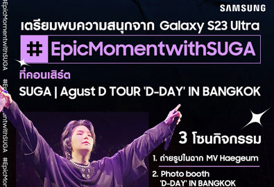 กรุงเทพฯ, ประเทศไทย 9 มิถุนายน 2566 – ซัมซุงจัดใหญ่เป็นผู้สนับสนุนหลักหนึ่งเดียวในการจัด SUGA | Agust D TOUR 'D-DAY' IN BANGKOK คอนเสิร์ตเดี่ยวครั้งแรกในประเทศไทยของ SUGA ศิลปินมากความสามารถจากวง BTS พร้อมเปิดให้ทุ...