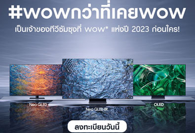 WOW กว่าที่เคย WOW ซัมซุงเปิดลงทะเบียนล่วงหน้าเพื่อสัมผัสประสบการณ์ใหม่แห่งความว้าวขั้นกว่าของทีวีซัมซุงที่เคยมี กับนวัตกรรมเทคโนโลยี ทั้ง Neo QLED 8K, Neo QLED 4K และ OLED TV ก่อนใคร!