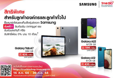 ซัมซุง ผู้นำด้านนวัตกรรมและเทคโนโลยีระดับโลก ร่วมมือกับ ทรู คอร์ปอเรชั่น ผู้นำการให้บริการสื่อสารและดิจิทัลแบบครบวงจรในประเทศไทย ร่วมจัดโปรโมชั่นและดีลสุดพิเศษแก่ลูกค้าธุรกิจและลูกค้าทั่วไป เมื่อซื้อมือถือสมาร์ทโฟนหรือแท็บเล็ต เครื่องเปล่า ไม่...