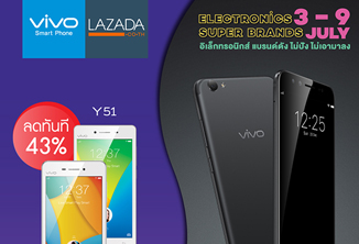 Vivo เข้าร่วมแคมเปญใหญ่กับ Lazada "Electronics Super Brands อิเล็กทรอนิกส์ แบรนด์ดัง ไม่ปัง ไม่เอามาลง" 3-9 กรกฏาคม 2560 นี้ Vivo พารุ่นน้องเก่าแต่ไฟแรง และ รุ่นน้องใหม่ไฟแรงเฟ่อร์ มามอบโปรโมชั่นสุดพิเศษ ให้กับแฟนๆ คนรัก วีโว่&n...