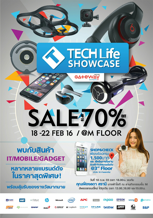 ศูนย์การค้าเกตเวย์ เอกมัย เอาใจขาช้อปและเหล่าสาวกไอที จัดแคมเปญ TECH Life SHOWCASE ยกขบวนกองทัพสินค้า IT / MOBILE / GADGET หลากหลายแบรนด์ดังมาให้คุณช้อปในราคาสุดพิเศษ อาทิ IT City, Intel, Acer, WD, Epson และ HP พร้อมตื่นตาตื่นใจไปกับการแสดงไซค์คาร์ Acer Predator Mobile การผสานนวัตกรรมไอทีและยานยนต์ เปิดประสบการณ์ใหม่อันน่าตื่นเต้น เพิ่มอรรถรสในการเล่นเกมอย่างเต็มรูปแบบและสมจริงยิ่งขึ้นกว่าเดิม แล้วมาอัพเดตเทคโนโลยีและแอพพลิเคชั่นชื่อดังจากกูรูของ You Drink I Drive, Wongnai และ Primetime พร้อมร่วมสนุกกับกิจกรรม SHOP&CHECK ง่ายๆ เพียงช้อปครบ 1,500 บาท และเช็คอินภายในงาน รับฟรีทันที! ติดฟิล์มจอมือถือ (จำกัด 10 ท่านแรกต่อวัน) พร้อมเซอร์ไพรส์สุดว้าว ในวันที่ 18 ก.พ. 59 เวลา 18.00 น. ให้คุณได้ใกล้ชิดกับนางฟ้าไอที คุณเฟื่องลดา สรานี ที่จะมาเผยเทคนิคโดนๆ ที่เหล่าสาวกไอทีห้ามพลาด มาร่วมอัพเดตเทรนด์สุดล้ำกันได้ตั้งแต่วันที่ 18 - 22 ก.พ. 59 นี้ ณ ลานกิจกรรมชั้น M ศูนย์การค้าเกตเวย์ เอกมัย ทั้งนี้ผู้สนใจสามารถชมรายละเอียดงานเพิ่มเติมได้ที่ www.facebook.com/GatewayEkamai