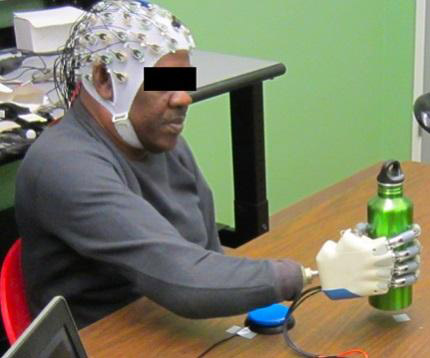 โดยทางมหาวิทยาลัย University of Houston ได้คิดค้นอุปกรณ์สุดเจ๋ง ที่มีชื่อว่า Thinking cap ซึ่งมีลักษณะเป็นหมวก ครอบไว้ที่ศีรษะเพื่อควบคุมการสั่งการจากสมอง โดยวงจรภายในหมวก หรือ Brain-Machine Interface (BMI) จะทำการแปลงคลื่นสมอง ให้กลายเป็นการเคลื่อนไหว ยกตัวอย่างเช่น สมองสั่งการให้ยกของ เจ้าหมวกตัวนี้ ก็จะทำการแปลงคลื่นสมอง ให้เป็นท่าทาง และทำให้แขนเทียมที่ยึดติดกับ หมวกใบนี้ ยกแขนเพื่อหยิบของตามคำสั่ง ซึ่งจากการทดสอบใช้งานพบว่า สมบูรณ์กว่า 80% แล้ว
