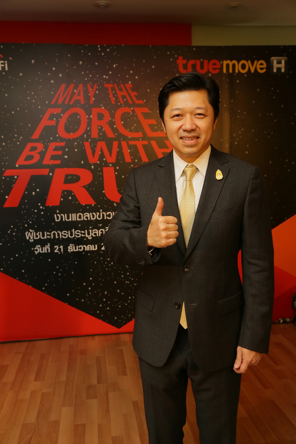 ซึ่งกลุ่มทรูนับเป็นผู้ให้บริการเพียงรายเดียวที่มีความพร้อมในการมุ่งสู่บริการ 4G Advance รายแรก อย่างแท้จริง มั่นใจการประมูลครั้งนี้เสริมความแข็งแกร่งให้ธุรกิจ ลดความเสี่ยงในการประกอบการในระยะยาว และมีความคุ้มค่าในทุกด้าน ทั้งการขยายฐานลูกค้าของทรูมูฟ เอชที่กำลังเติบโตอย่างต่อเนื่อง และความสามารถในการให้บริการด้วยความครอบคลุมและสปีดที่เร็วแรงเหนือกว่า นอกจากนี้ คลื่นความถี่ 900 MHz ที่ประมูลได้ครั้งนี้ ยังลดภาระต้นทุนในการขยายโครงข่ายกว่า 45,000 ล้านบาท อีกทั้งยังมาพร้อมกับฐานลูกค้าที่ใช้คลื่นและอุปกรณ์มือถือ 900 MHz ทั่วประเทศ กลุ่มทรูในฐานะบริษัทคนไทย จะมุ่งมั่นทำดีที่สุด เพื่อผู้บริโภคชาวไทยและประเทศไทยตลอดไป