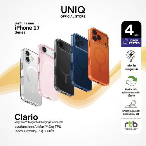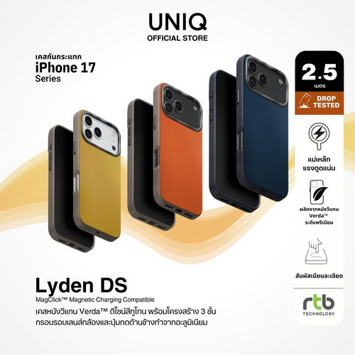 ภายใต้ปรัชญา “We make life better by design” UNIQ มุ่งมั่นสร้างสรรค์ผลิตภัณฑ์ที่ผสานดีไซน์อันโดดเด่นเข้ากับฟังก์ชันการใช้งาน เพื่อยกระดับประสบการณ์การใช้สมาร์ทโฟนในทุกวัน โดยพิสูจน์ความสำเร็จในไทยมากว่า 13 ปี ตั้งแต่ยุค iPhone 4 โดยเคสสำหรับ iPhone 17 ทุกรุ่นได้รับการออกแบบมาอย่างพิถีพิถัน เพื่อมอบการปกป้องรอบด้านแบบ 360 องศา และรองรับการชาร์จไร้สายผ่านวงแหวนแม่เหล็ก MagClick™ อันทรงพลัง