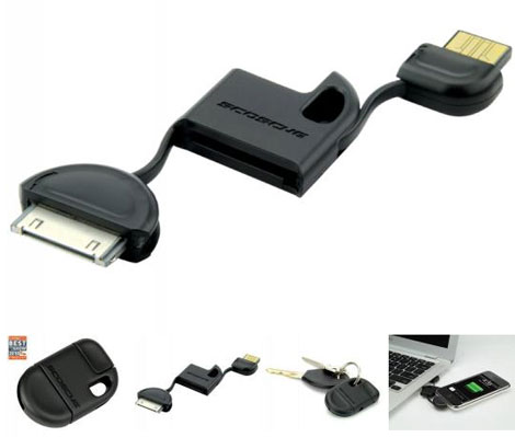 Scosche flipSYNC เป็นสาย USB ที่แปลงร่างเป็นพวงกุญแจ ให้พกพาได้ง่ายๆเลยครับ ขนาดก็เท่าๆกับ รีโมทรถยนต์ทั่วๆไปนะครับ สาย USB มีทั้งรุ่นสำหรับ iPhone/iPod Touch และสาย USB สำหรับ BlackBerry (คือสาย micro USB นั่นเองครับ) ราคาก็ 19.99 $ (ประมาณ 660 บาท)