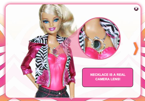 ตุ๊กตาบาร์บี้ ขวัญใจหนูๆในบทบาทช่างภาพก็สมจริงมากๆ ที่ตัวของตุ๊กตาบาร์บี้จะมีกล้องขนาดจิ๋วฝังเลนส์อยู่ที่สร้อยคอของเธอ โดยมี LCD เล็กๆอยู่ด้านหลังอีกด้วย แค่นี้คุณบาร์บี้ก็สามารถเก็บภาพทุกความประทับใจได้ทุกที่ทุกเวลา