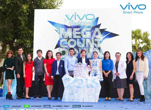 วันที่ 22 ธันวาคม 2558 ณ ห้างสรรพสินค้า เมกาบางนา มีการจัดแถลงข่าวกิจกรรม “vivo Smartphone Present Mega Countdown 2016” โดย vivo Smartphoneร่วมกับศูนย์การค้าMega Bangnaเชิญชวนทุกท่านร่วมเคาท์ดาวน์ต้อนรับปี 2016 ด้วยกิจกรรมการแสดงที่ช่วยสร้างรอยยิ้มและเสียงหัวเราะตลอดเทศกาลเฉลิมฉลองสิ้นปีนี้อย่างมากมาย