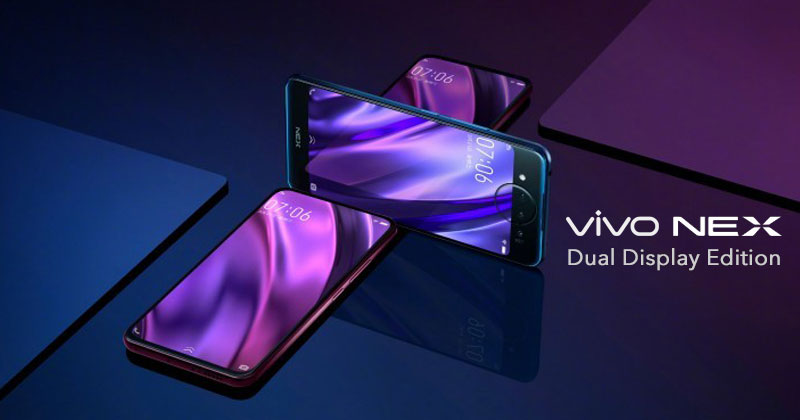 ล่าสุด vivo ได้เปิดตัวสมาร์ทโฟนเรือธงรุ่นใหม่ในชื่อ vivo NEX Dual Display Edition อย่างเป็นทางการแล้ว ซึ่งมาพร้อมกับดีไซน์ที่ไม่เหมือนใคร ด้วยหน้าจอแสดงผลทั้งด้านหน้าและด้านหลังตัวเครื่อง ทำให้สมาร์ทโฟนรุ่นนี้ไม่จำเป็นต้องมีกล้องด้านหน้า เนื่องจากสามารถใช้กล้องด้านหลังถ่ายเซลฟี่ได้ในตัว