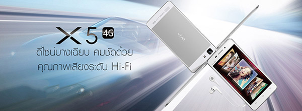 ต่อมาคือ vivo X5 สมาร์ทโฟนที่มาพร้อมหน้าจอขนาด 5 นิ้ว ความละเอียด HD พร้อม CPU Qualcomm Snapdragon 615 Octa-core 1.5GHz 64-bit/RAM 2GB และ GPU Adreno 405 คุณภาพสูง ให้การใช้งานที่รวดเร็วลื่นไหล พร้อมการใช้งาน 2 ซิม เพื่อการใช้งานได้ทุกขณะจึงได้ออกแบบให้รองรับการใช้งานอินเทอร์เน็ตในระบบ 4G ได้ทั้ง 2 ซิม อีกทั้งการใช้งานที่หลากหลายขึ้นโดยการใส่ไมโครซิมในช่องซิมหลัก และเลือกใส่ TF card หรือนาโนซิมในช่องซิมรอง และยังมีระบบเสียงชั้นยอดจากชิปเสียง DAC CS4398 ซึ่งเป็นความร่วมมือกันระหว่าง vivo และ Cirrus Logic พร้อมแอมป์ MAX97220 ทำให้ได้คุณภาพเสียงระดับ Hi-Fi คมชัดทุกรายละเอียด และเพลิดเพลินกับเสียงเพลงได้มันส์ยิ่งกว่า และกล้องหลังความละเอียด 13 ล้านพิกเซล กล้องหน้าความละเอียด 5 ล้านพิกเซล ทั้งหมดนี้คุณสามารถเป็นเจ้าของ vivo X5 ได้ในราคา 12,990 บาท