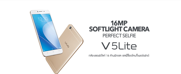 เมื่อวันที่ 23 กุมภาพันธ์ 2560 vivo เปิดตัว Vivo V5Lite สมาร์ทโฟนราคาสุดคุ้มรุ่นใหม่อย่างเป็นทางการ ที่มาพร้อมหน้าจอ 5.5 นิ้ว ความละเอียด 1280 x 720 พิกเซล, ซีพียู Octa-core 64 bit , แรม 3GB, หน่วยความจำ 32GB, รองรับ microSDได้ถึง256GB , โดยใช้ระบบปฏิบัติการ Funtouch OS 3.0, กล้องหน้า 16 ล้านพิกเซล, กล้องหลัง 13 ล้านพิกเซล, รองรับ 4G LTE และ 2 ซิม ส่วนแบตเตอรี่ความจุ 3000mAh