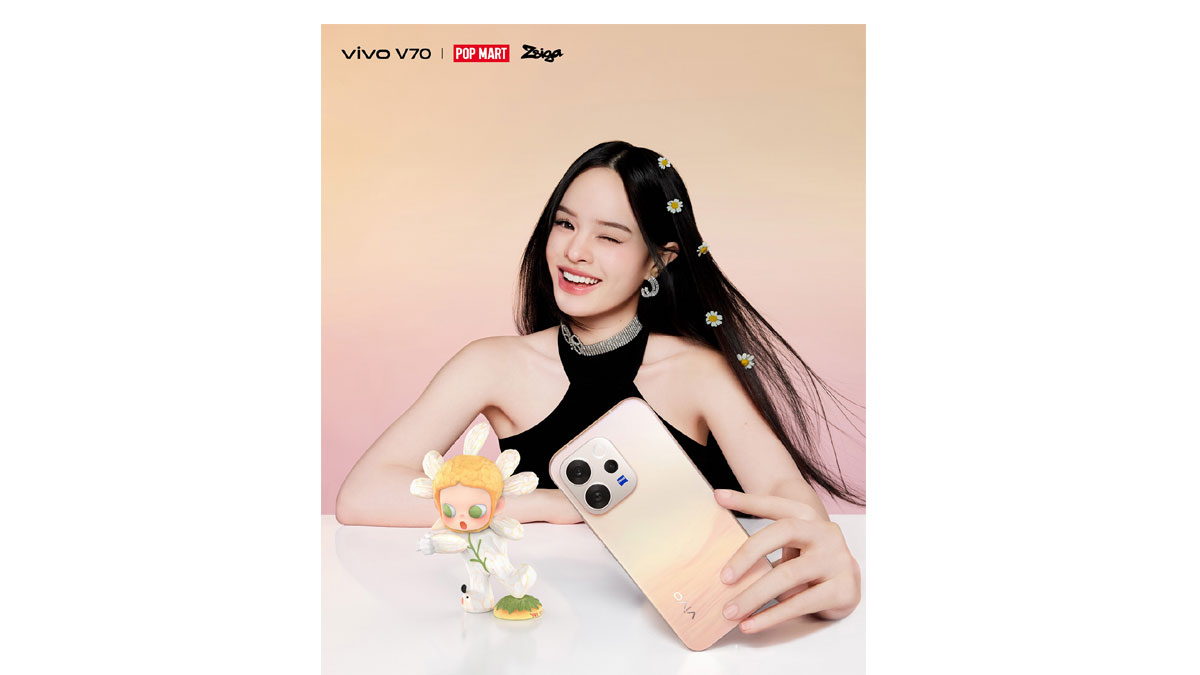 vivo เผยโฉมดีไซน์ล่าสุดของ vivo V70 ผ่านแฟชั่นเซ็ตสุดเอ็กซ์คลูซีฟ แท็กทีมศิลปินสาวสวยไอคอนของชาว Gen Z อย่าง ‘แอลลี่-อชิรญา นิติพน’ มาเป็นตัวแทนถ่ายทอดแรงบันดาลใจครั้งใหม่ของวงการเทคโนโลยีและป๊อปคัลเจอร์ พร้อมเปิดตัวคอลแลบพิเศษกับ POP MART ZSIGA ในคอลเลกชันใหม่ล่าสุด ‘Under the Sun’ ลุ้นรับ vivo V70 x POP MART ZSIGA Premium Gift เพียงสั่งจองในรอบ Blind Booking ตั้งแต่วันที่ 14 – 26 ก.พ. นี้!
