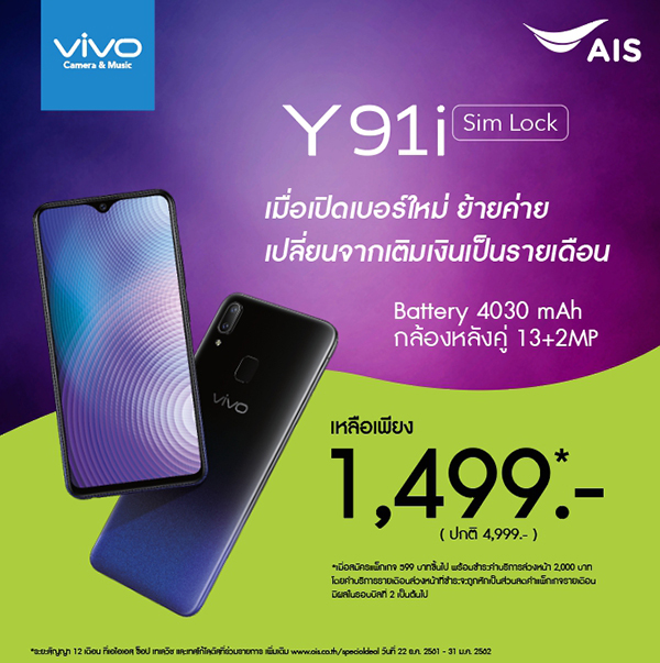 โดย Vivo Y91i มาพร้อม หน้าจอ Halo FullView™ Display ขนาด 6.22นิ้ว HD+ จอใหญ่เต็มตา และ กล้องคู่ 13+2 MP ที่ถ่ายหน้าชัดหลังละลายได้เนียน และถึง Vivo Y91i เป็นน้องเล็กก็ยังไม่มองข้ามในเรื่องของความปลอดภัยที่จะ ให้การสแกนนิ้วมือ และการสแกนใบหน้าที่สะดวกสบายและปลอดภัยมากยิ่งขึ้น มาพร้อมกับแบตขนาดใหญ่ 4030 mAh ที่ให้คุณใช้งานทั้งวันได้อย่างสบายๆ พร้อมลุยในทุกสถานการณ์ตลอดวัน