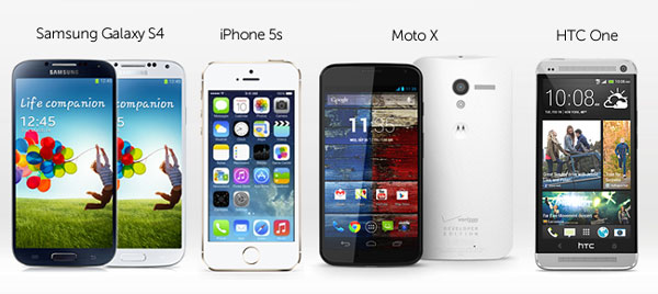 smartphone samsung galaxy s4 iphone 5s HTC One Motorola Moto X