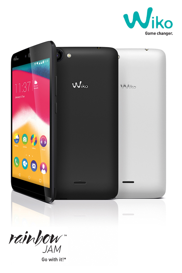 “Wiko” (วีโก) สมาร์ทโฟนสัญชาติฝรั่งเศส เปิดตัวสมาร์ทโฟนรุ่นใหม่ “Rainbow Jam” (เรนโบว์ แจม) มาพร้อมกับหน้าจอ HD ขนาด 5 นิ้ว ให้ความคมชัดที่มากขึ้น รองรับระบบปฏิบัติการแอนดรอยด์รุ่นล่าสุด 5.1 Lollipop เพิ่มหน่วยความจำนอกตัวเครื่องได้ถึง 64 GB สามารถเชื่อมต่อกับ USB ON-THE-GO ใช้งานได้ลื่นไหลด้วย CPU Quad Core ความเร็ว 1.3 GHz Rom 16 GB Ram 1 GB รองรับการทำงาน 2 ซิม และ 3G ทุกเครือข่าย ทำให้ไม่พลาดทุกการติดต่อ นอกจากนี้ยังมีกล้องหลักความละเอียด 8 ล้านพิกเซล และกล้องหน้า 5 ล้านพิกเซล ผิวสัมผัสของตัวเครื่องออกแบบมาให้จับกระชับมือ ฝาหลังออกแบบมาเฉพาะให้คล้ายกับหนัง (Leather effect) ทำให้ดูคลาสสิกมากยิ่งขึ้น มี 2 สีให้เลือก คือสีขาวและสีดำ คุ้มค่าในราคา 3,490 บาท