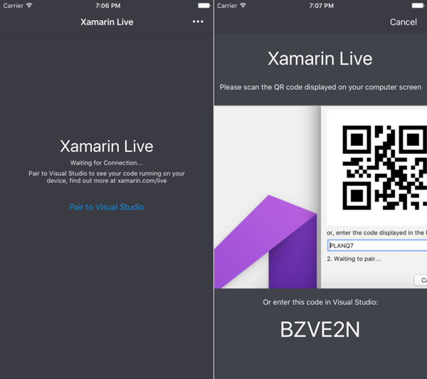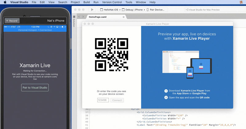 โดยทางนักพัฒนาจะต้องทำการดาวน์โหลด และติดตั้งแอปพลิเคชัน Xamarin Live Player บนอุปกรณ์ iOS ก่อน แล้วจากนั้นต้องทำการจับคู่ (Pair) กับ PC ด้วยการสแกน QR Code ที่ปรากฏบนหน้าจอ ซึ่งนักพัฒนาสามารถดูความเปลี่ยนแปลงของแอปฯ ตนเองเมื่อทำการแก้ไขแบบ Real-Time ได้ผ่านทาง Live Player